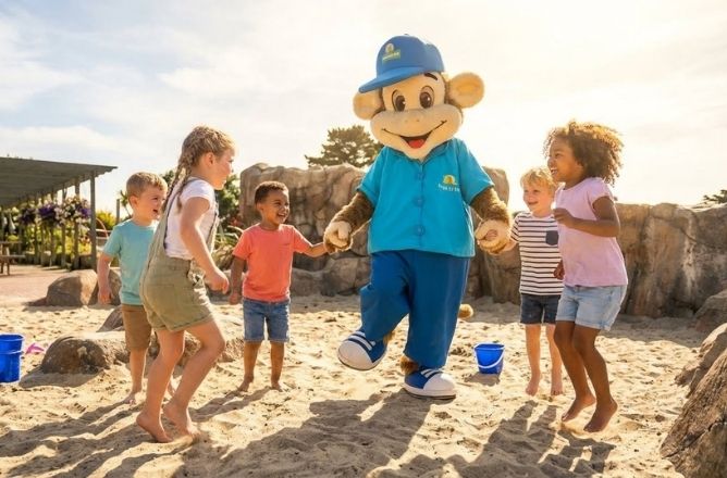 Funky Monkey is the friendly face everyone loves at Monkey Tree Holiday Park. As soon as you arrive, he welcomes you with dancing and cheerful meet-and-greets.